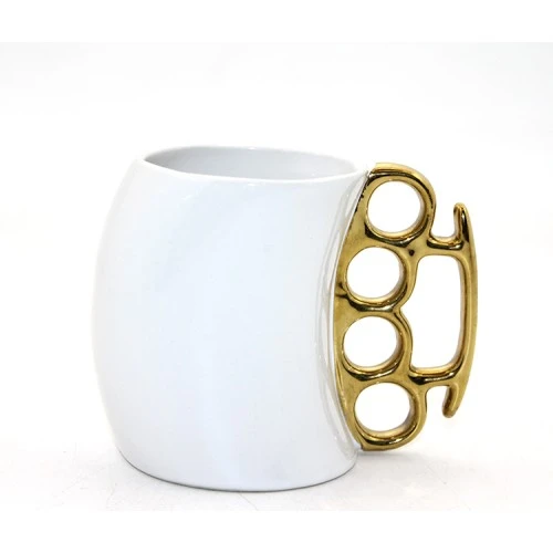 Porselen Muşta Tasarımlı Kupa Bardak Beyaz Renk