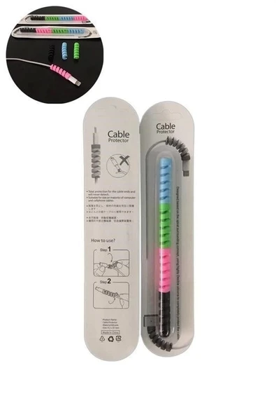 İpek Yıldızı® 4lü Apple, Android Şaj Kablosu Koruyucu Silikon Spiral Yay Aparat