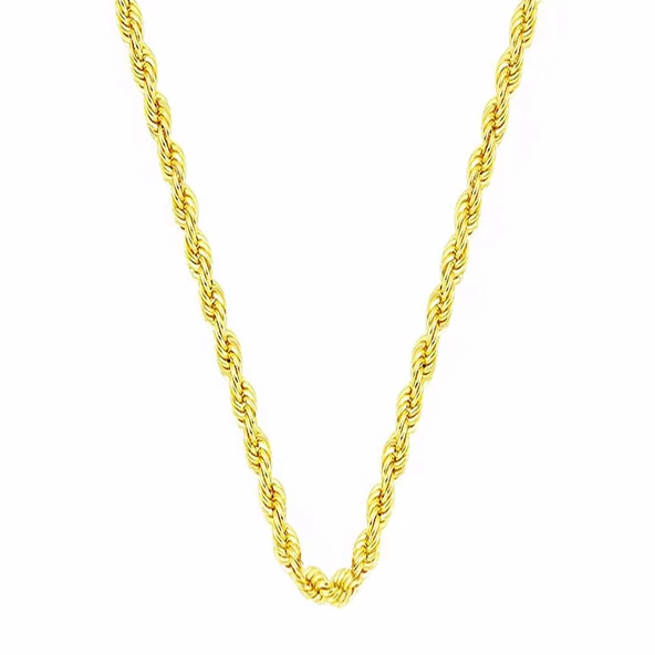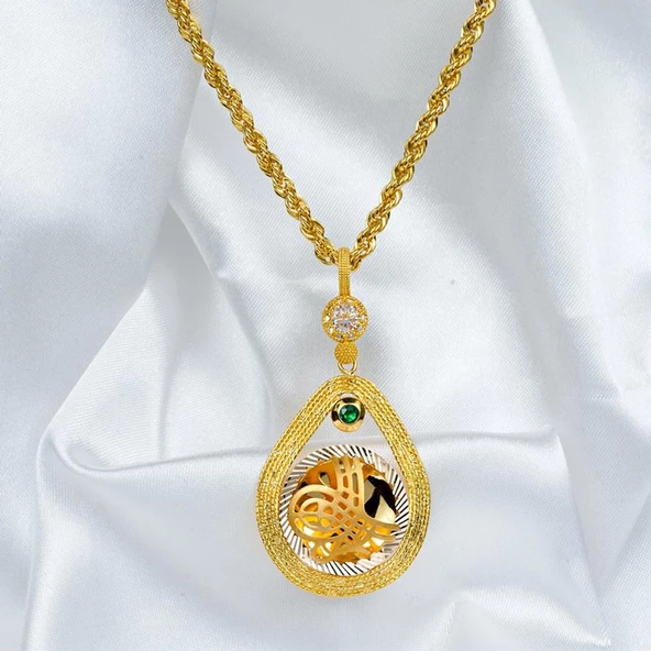 Tuğralı Kolye Altın Damla Tasarım Burgu Halat Zincirli