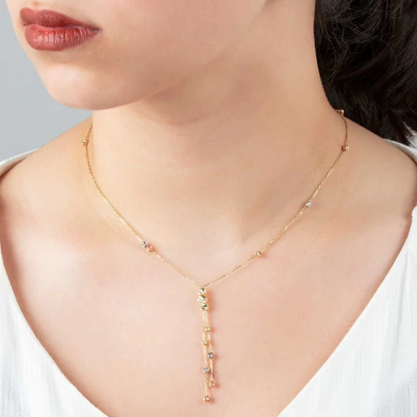 Taşlı Damla Tuğralı 14 Ayar Altın Kolye