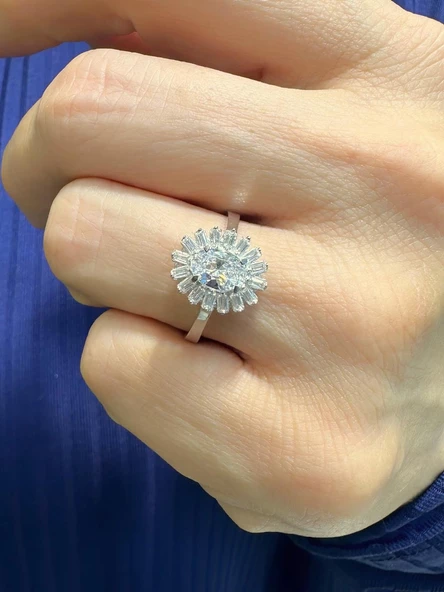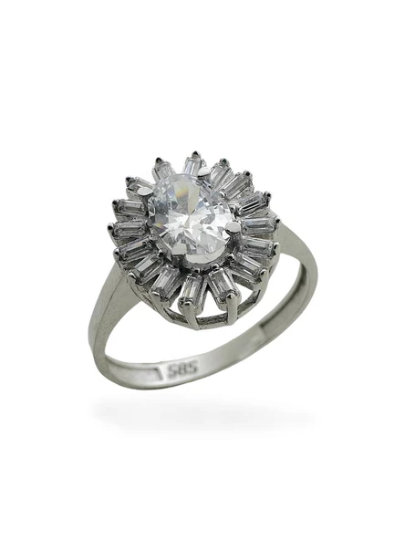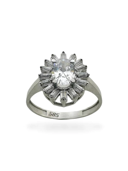 Oval Zirkon Taş Pırlanta İşçiliği Beyaz Altın Yüzük