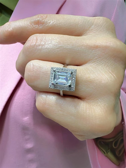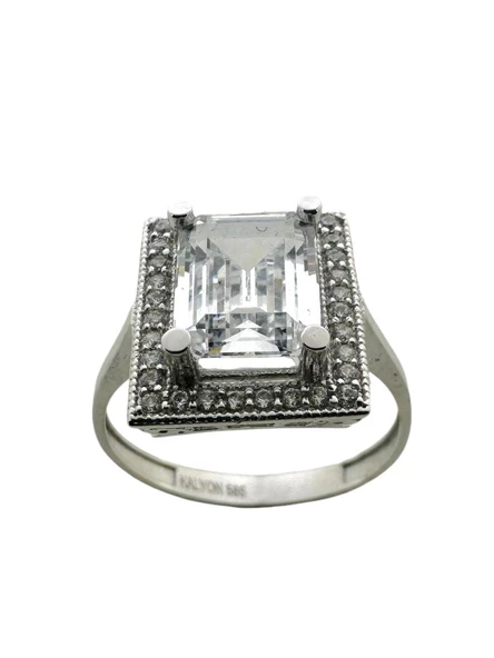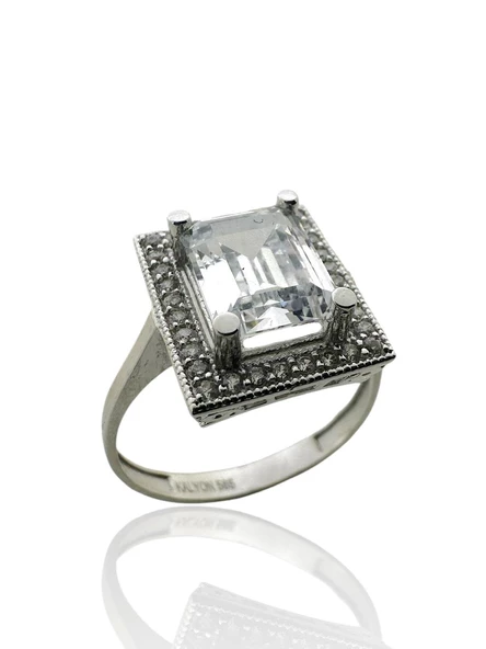 8 Ayar Beyaz Altın Yüksek Taş Beştaş Yüzük