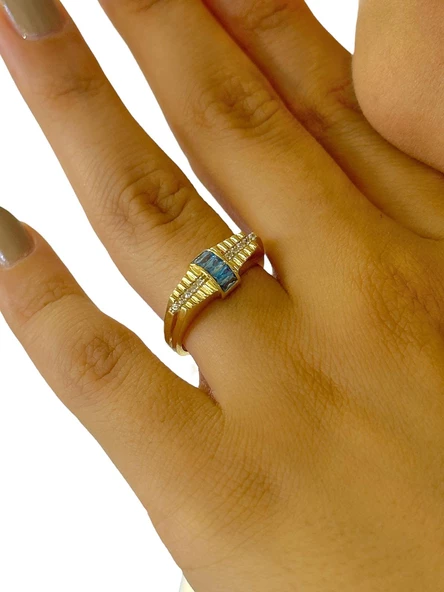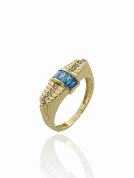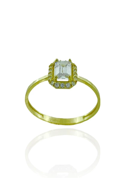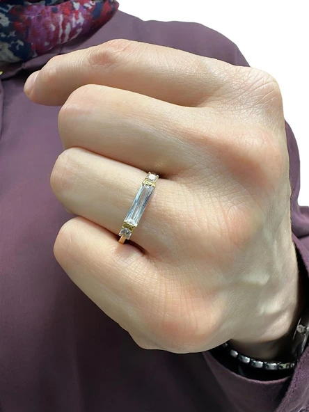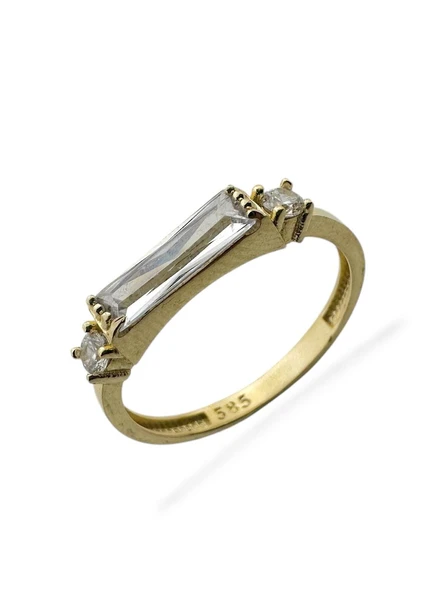 8 Ayar Altın Minik Baget Taşlı Günlük Tektaş Yüzük