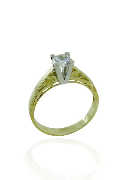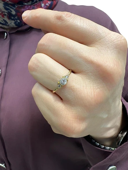 8 Ayar Altın Özel Montür 5 mm Zirkon Tektaş Yüzük