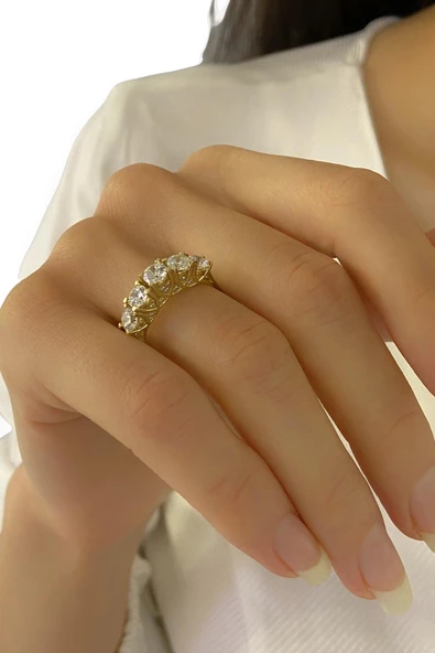 8 Ayar Altın Beş Taş Yüzük