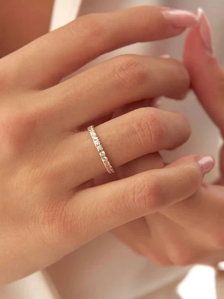 Baget Zirkon Pırlanta Montür Yarım Tur Altın Yüzük