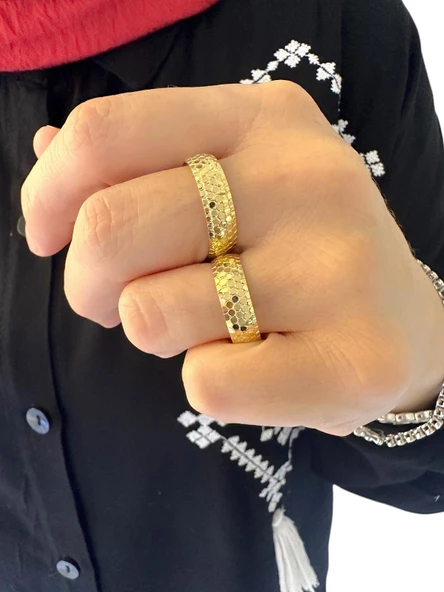 22 Ayar Altın Noktalı Ajda Yüzük Alyans Çok Şık