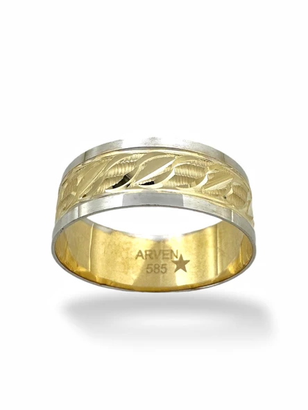 Lazer İşlemeli 7 mm 14 Ayar Altın Alyans Yüzük