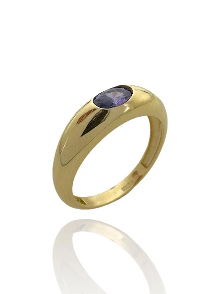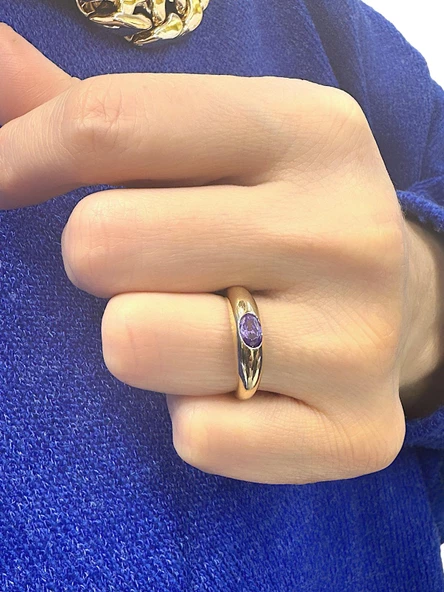 Yan Oval Ametist Taş Özel Kalite Altın Yüzük