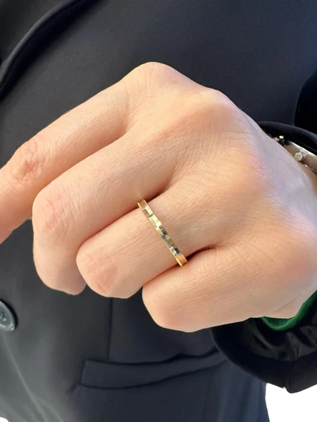 Oluklu Ajda Altın Yüzük Trend Tarz Alyans 14 Ayar Altın