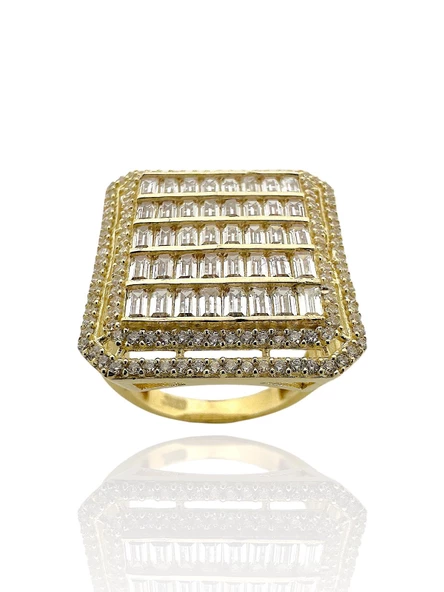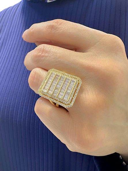 Büyük Baget Taşlı Beyaz Altın 14 Ayar Yüzük