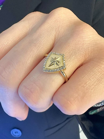 Kutup Yıldızı Üst Kalite Özel Tasarım 14 Ayar Altın Yüzük