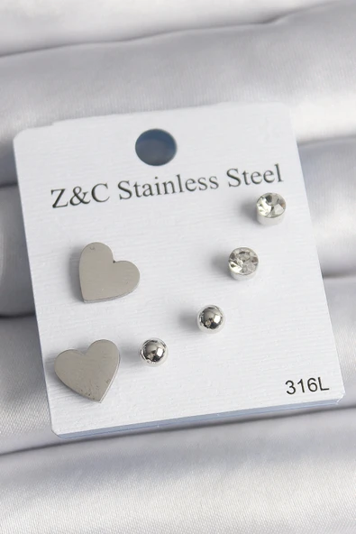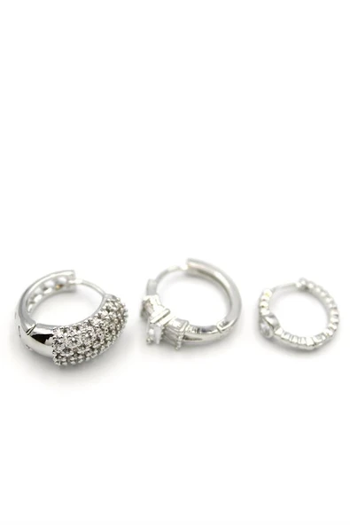 316L Çelik Gümüş Renk Zirkon Taşlı Labirent Model Kadın Küpe Seti