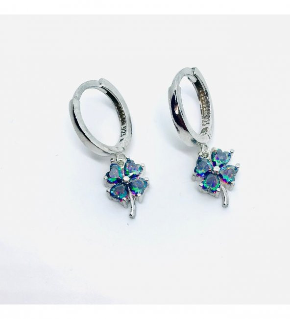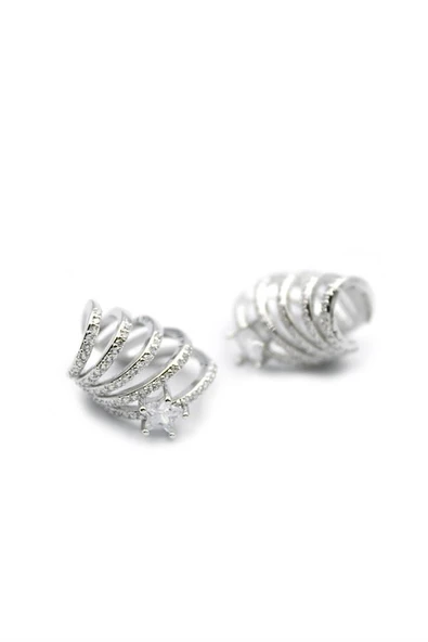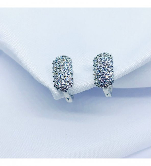 Zirkon Taşlı Klipsli Gümüş Küpe