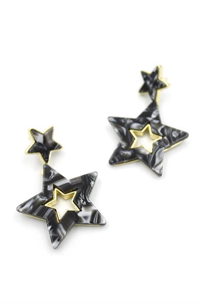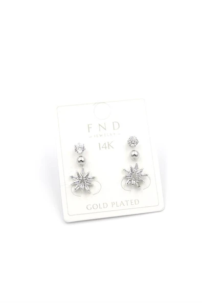 Pirinç Zirkon Taşlı Deniz Yıldızı Model Gold Renk 925 Ayar Gümüş Çivi Kadın Küpe Set