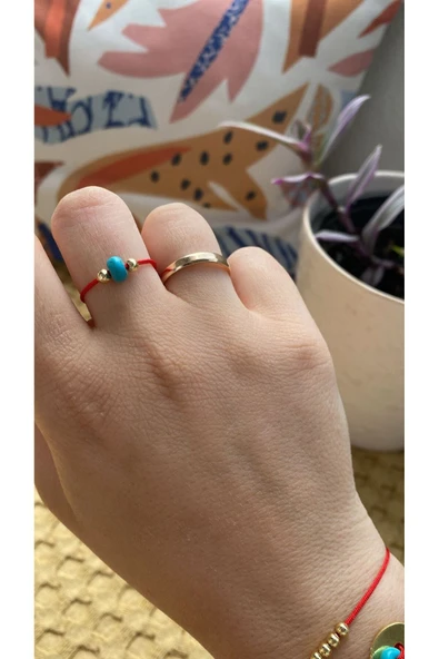BAE ATOLYE Doğal Turkuaz Taşlı Kırmızı Ayarlanabilir İp Yüzük
