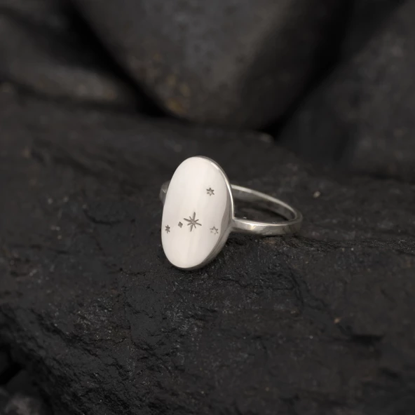 925 Ayar Gümüş Yıldız Motifli Zarif Yüzük Kişiye Özel Tasarım
