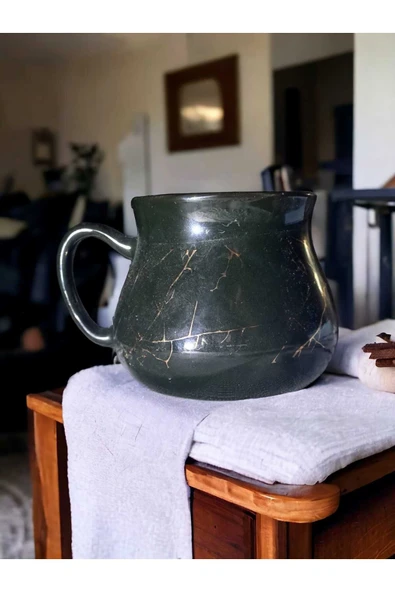 Lavin Mermer Desenli Siyah Seramik Kupa