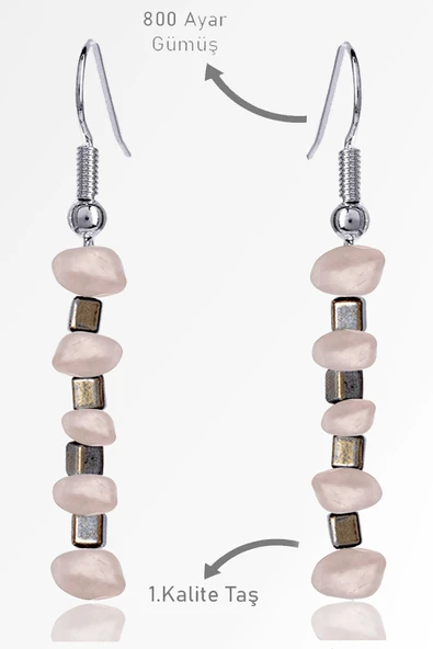 Sertifikalı Ham Kırık Taşlı Model Pembe Kuvars Taşı Küpe - Açık Renkli