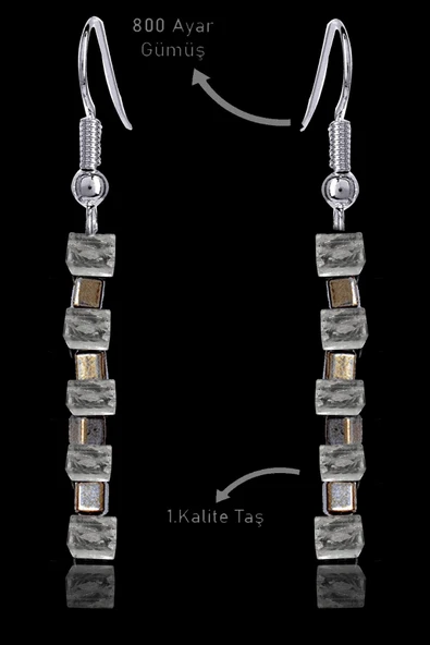 Sertifikalı Küp Ham Kırık Taşlı Model Şeffaf Kristal Kuvars Taşı Küpe