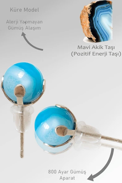 Sertifikalı Gerçek Damarlı Mavi Akik Taşı Nokta Doğal Taş Küpe