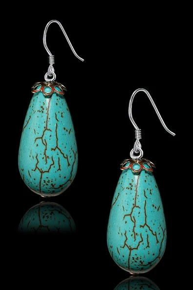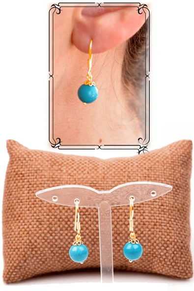 Sertifikalı Damla Model Firuze Taşı Küpe (Turkuaz Taşı) -24k Altın Kaplama