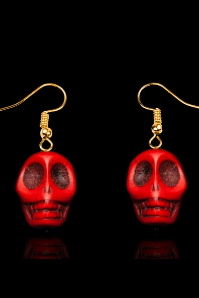 Sertifikalı Kuru Kafa Model Gerçek Kırmızı Havlit Taşı Küpe - 24k Altın Kaplama