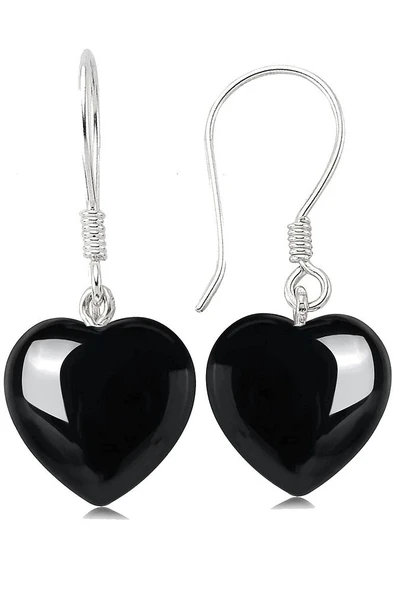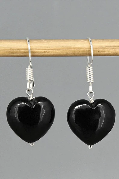 Sertifikalı Kalp Kesim Siyah Obsidyen Taşı Doğal Taş Küpe