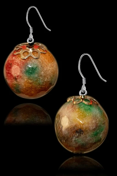 Sertifikalı Benekli Ay Taşı Doğal Taş Küpe