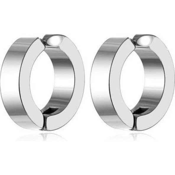Geniş Erkek Çelik Küpe Çifti Gümüş Renk 6mm