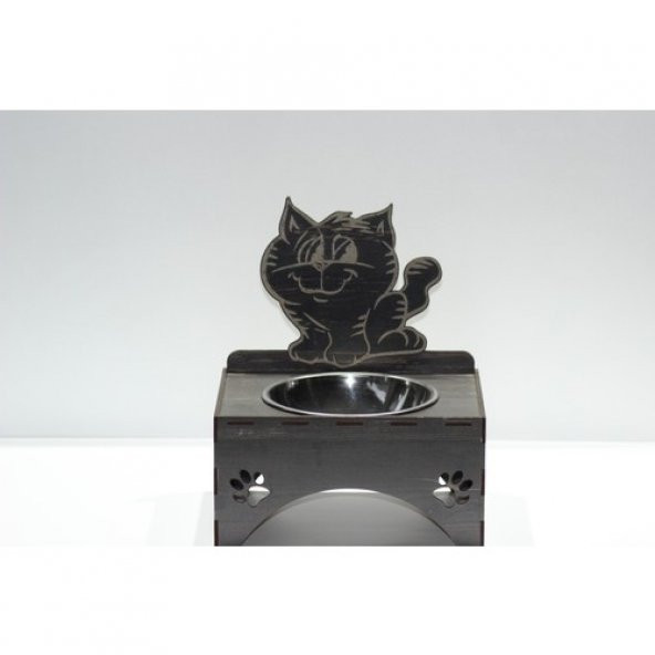 Kediler İçin Özel Yapım Lazer Kesim Tekli Ahşap Mama Ünitesi Siyah