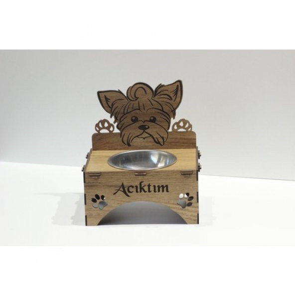 Köpekler İçin Özel Yapım Lazer Kesim Tekli Ahşap Mama Ünitesi