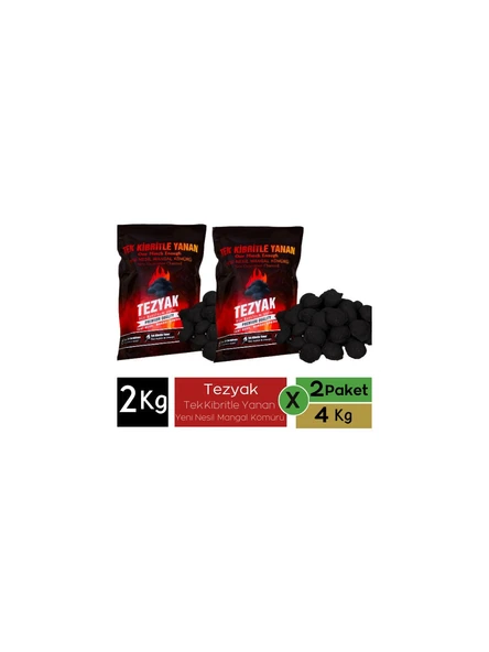 TEZYAK Klasik Tek Kibritle Yanan Yeni Nesil Mangal Kömürü (2 Paket x 2 kg ) 4 kg
