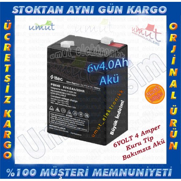 AUEH_Ttec 6v 4ah Bakımsız Kuru Akü 6 volt akü 4 amper akü 6 volt 4 amper akü AYNI GÜNE YADA ERTESİ GÜNE KARGO