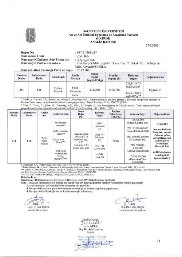 Kb Köyceğiz Balı Çam Balı 15 Kg Teneke