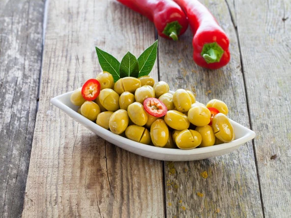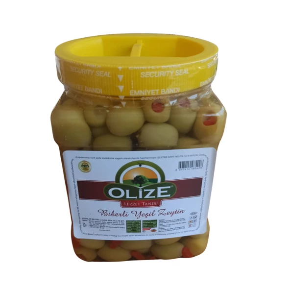OLİZE LEZZET TANESİ BİBERLİ YEŞİL ZEYTİN 1KG KUTU
