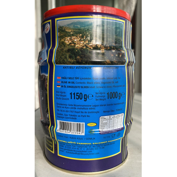 Katırlı Zeytin Katırlı Köyü Gemlik Kahvaltılık Siyah Zeytin Teneke 1 Kg