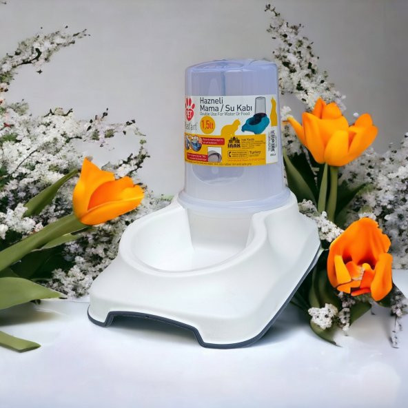 Girist Pet Kedi ve Köpek Büyük Boy Mama ve Su Sebili 1,5 Lt Beyaz