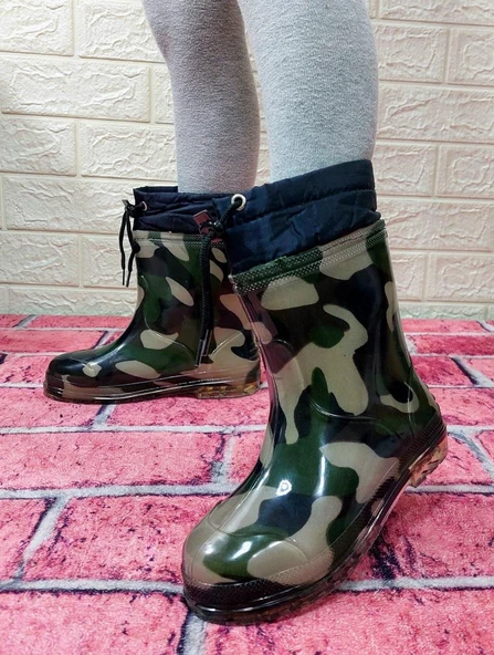 Çağrı Yeşil-siyah Kamuflaj İçi Yünlü Erkek Çocuk Yağmur Çizmesi