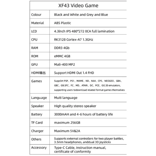 Ozmik XF43 Retro Oyun konsolu Emuelec 15000+Oyunlar Taşınabilir Video Oynatıcı 4.3 Inç