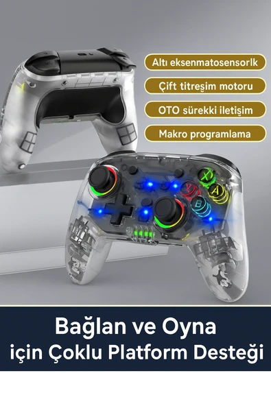 MY BLACK Kablosuz RGB Oyun Kolu Multi Platform Destekli, Makro Programlama
