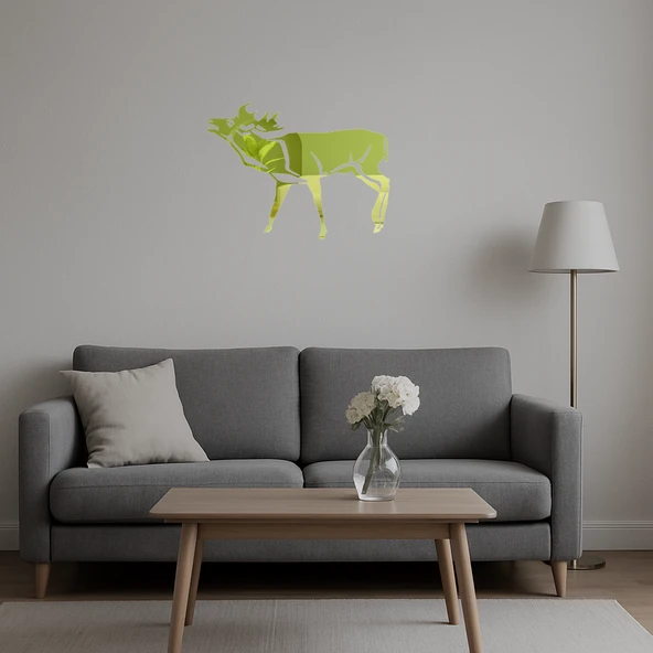 Geyik ve Doğa Temalı Dekoratif İç Mekan Altın Aynalı Tablosu