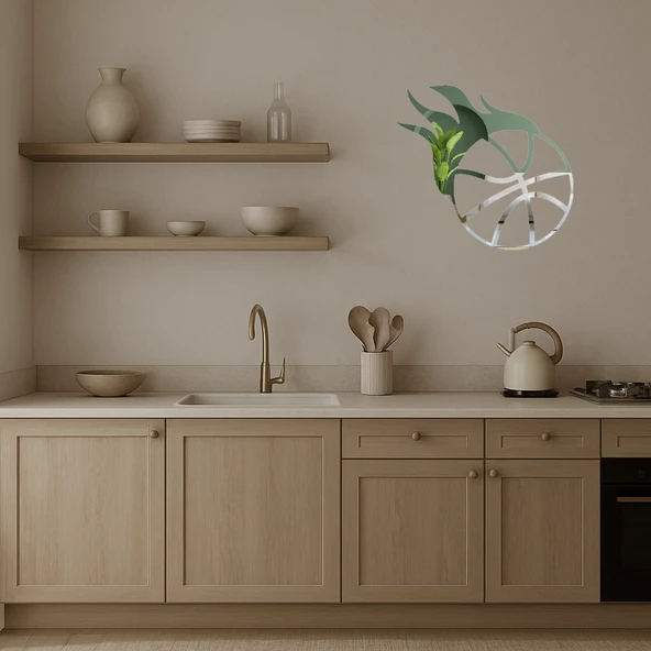 Doğal Çiçek ve Yaprak Desenli Dekoratif Aynalı Tablo
