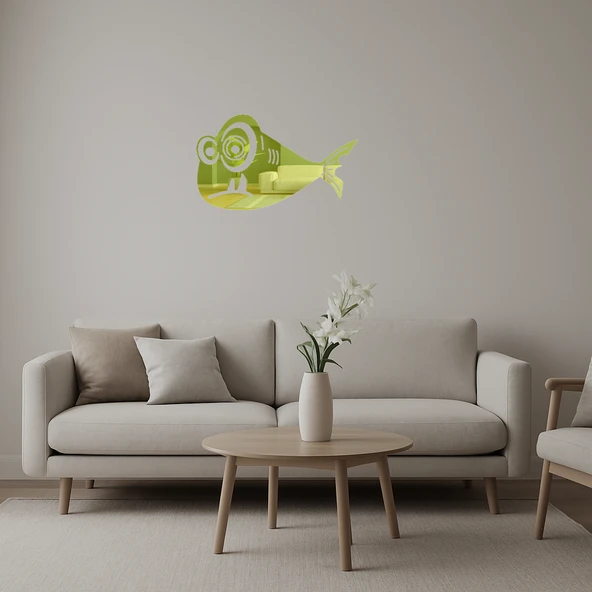 Komik Balıklar İç Mekan Dekoratif Altın Aynalı Tablo