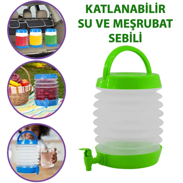 Akordiyonlu Su Sebili Meşrubat İçecek Kabı Bidonu Damacana Katlanabilir Musluklu Körüklü 5.5 Litre Termos Piknik Kamp Mangal