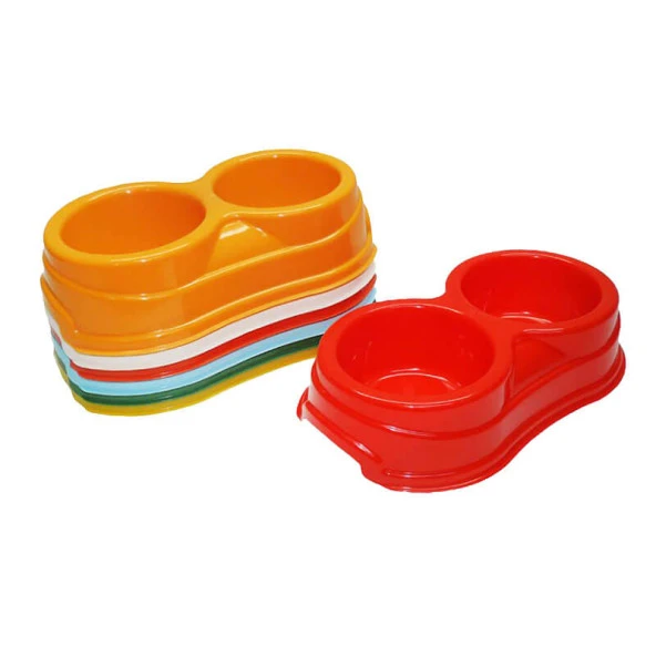 Kare İkili Plastik Kedi Mama Ve Su Kabı