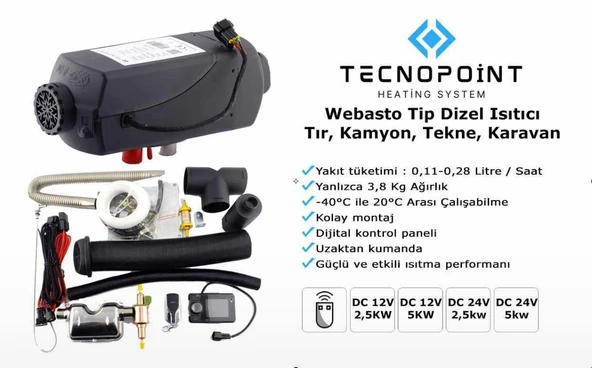 Tecno Point Tecnopoint TC18-01 12V 2.5kw Webasto Tip D2 Model Tekne, Karavan, Minibüs Uyumlu Dizel Isıtıcı