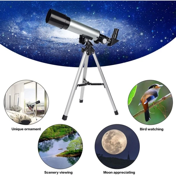 Mini Teleskop Kara Uzay Teleskobu Aliminyum Gövde Tripodlu 50 x 360