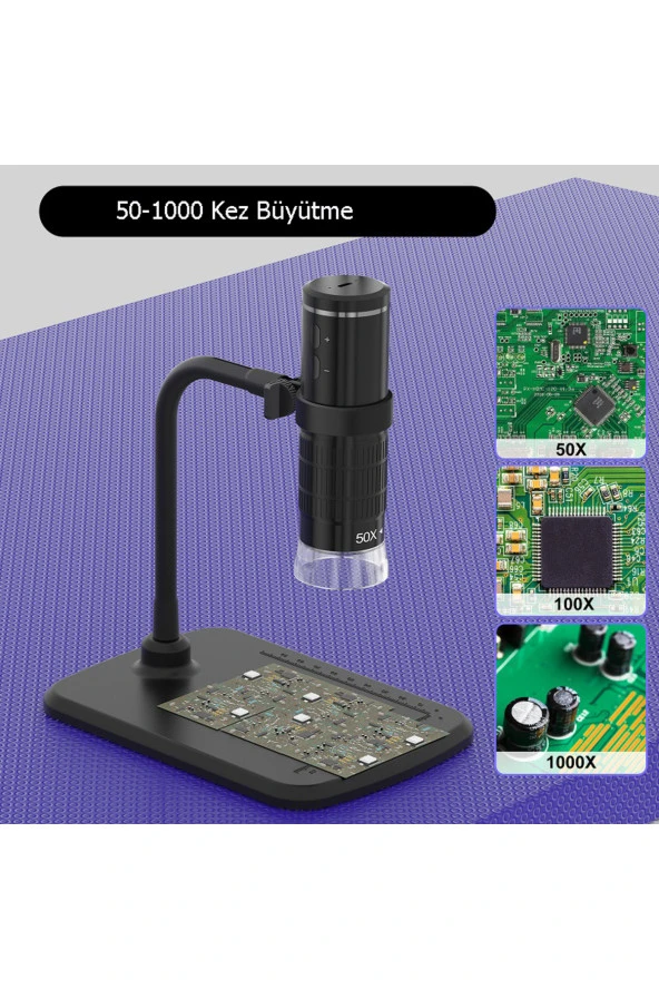 TechTic Kablosuz 1000x Wifi Bağlantılı Dijital Mikroskop 1080p Saç Cilt Tesktil Makine Devre Analizi