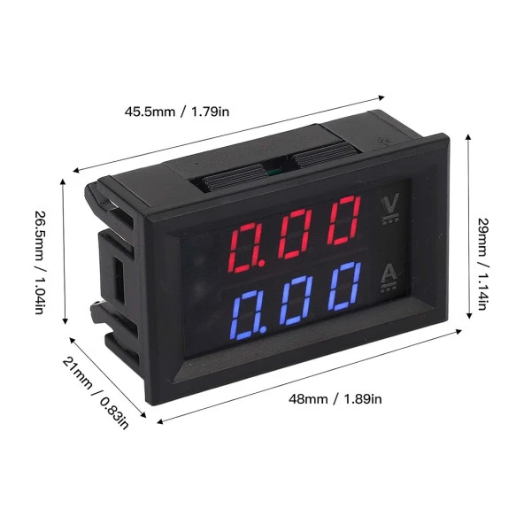Dijital Dual Voltmetre Ampermetre Volt Akım Ölçer DC 0-100V 10A